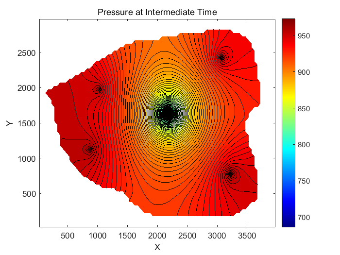 油藏数值模拟是油气田开发设计与动态管理的核心技术,通过建立数学模型刻画油藏内流体流动规律、参数时空演化特性,为开发方案优化、产量预测、剩余油分布评估提供科学依据。二维油藏模拟作为基础且实用的模拟形式,能够有效反映油藏平面上的参数分布与动态变化过程。相较于显式模拟,隐式模拟在处理高粘度流体、复杂边界条件及长期动态演化问题时具有更高的稳定性和计算效率,尤其适用于需精准捕捉渗透率与压力随时间动态变化的油井开发场景。