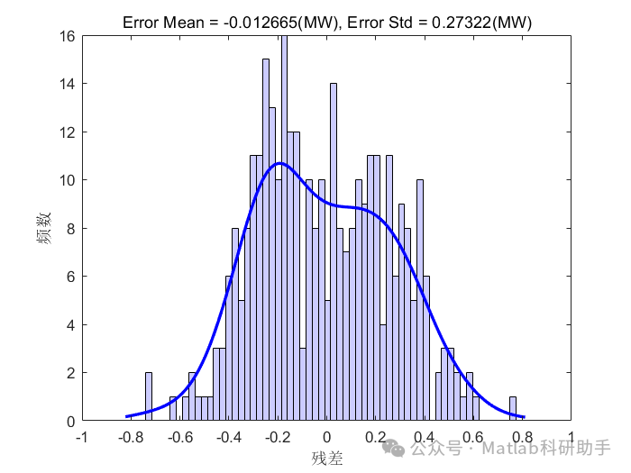KDE密度估计: 利用KDE方法对计算出的残差进行密度估计,得到残差的概率密度函数。Matlab中提供了