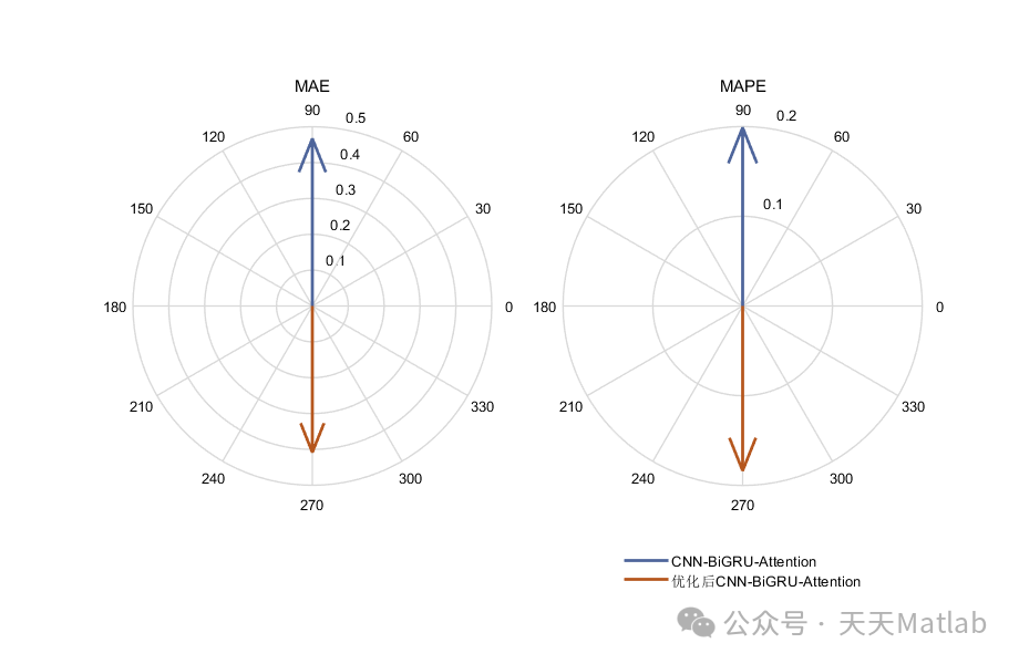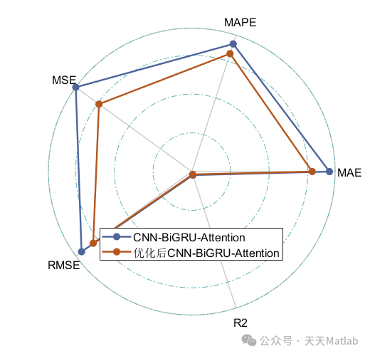 • 预测精度: BWO算法优化后的CNN-BiGRU-Attention模型的预测精度显著提高,例如平均绝对误差(MAE)、均方根误差(RMSE)等指标均有明显的下降。这表明BWO算法有效地找到了更优的参数组合,提高了模型的泛化能力。