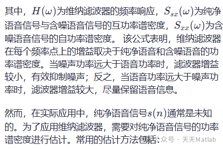 一、 维纳滤波原理及其在语音增强中的应用