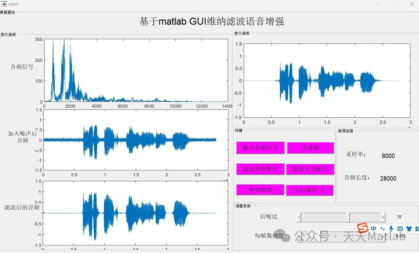 基于维纳滤波的语音增强方法是一种经典且有效的语音增强技术。通过合理的噪声估计和参数调整,可以有效地提高语音的信噪比,改善语音质量。 然而,维纳滤波器也存在一定的局限性,需要结合其他先进技术进行改进,以适应更复杂的噪声环境和更苛刻的应用需求。 未来的研究方向可以集中在更鲁棒的噪声估计方法、非线性滤波技术的融合以及深度学习在维纳滤波器设计中的应用等方面。 通过不断改进和完善,维纳滤波技术将在语音增强领域继续发挥重要作用。