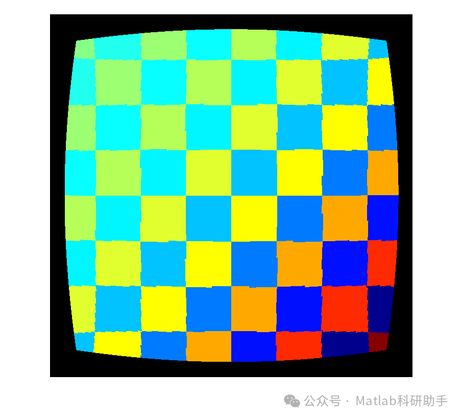 综上所述,基于MATLAB的畸形图像矫正方法通过相机标定和数学模型计算,可以有效地消除或减轻图像畸变,提高图像质量和应用价值。然而,该方法的精度受标定图像质量和标定算法的影响,需要进一步研究和优化,例如结合深度学习方法,提升矫正的鲁棒性和自动化程度。