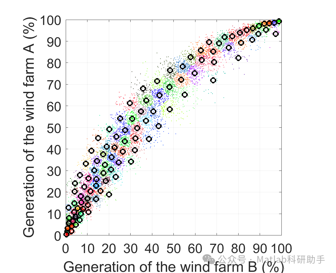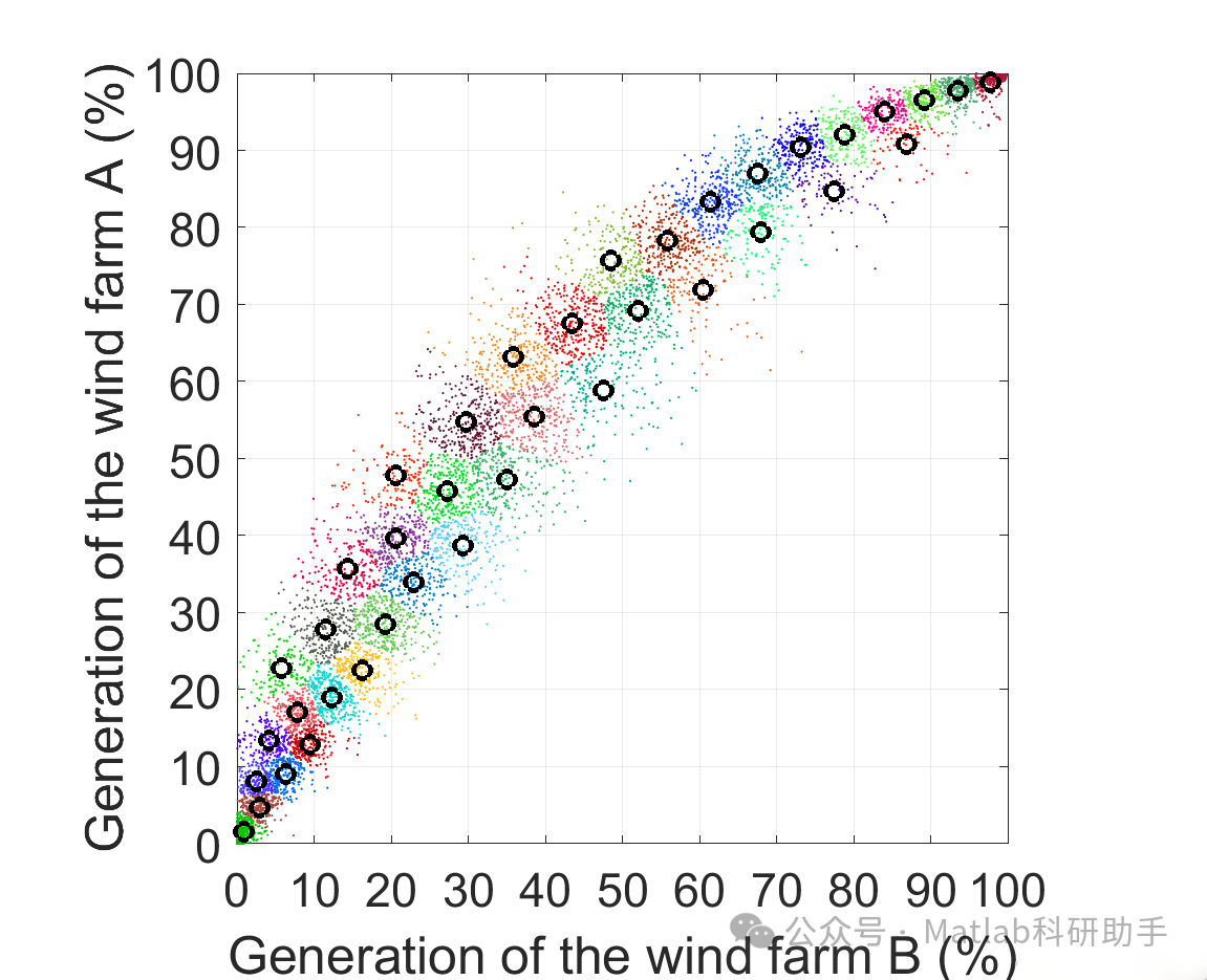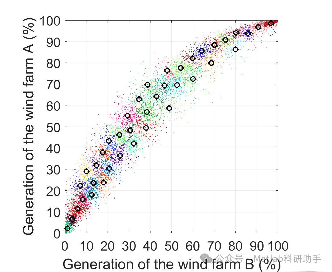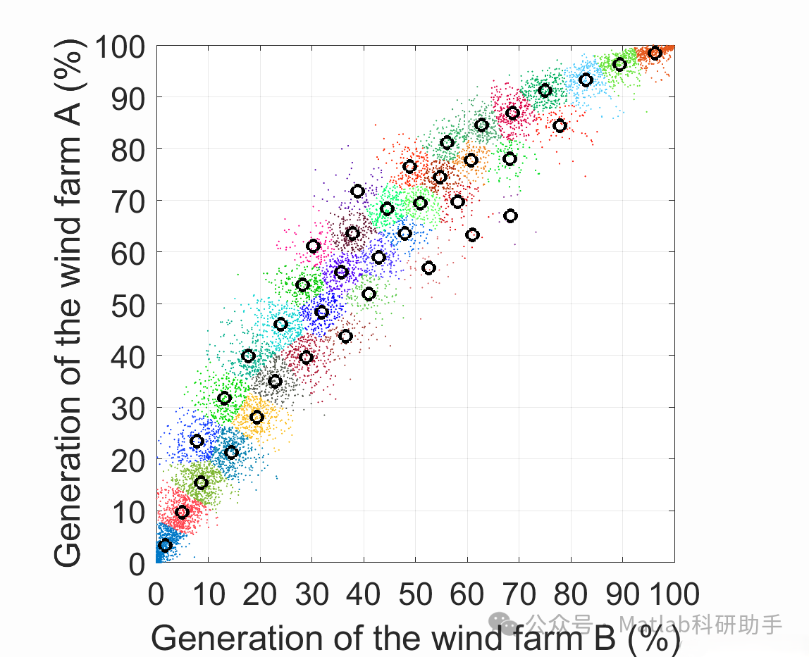 在风场景生成与削减中的应用: m-ISODATA算法能够根据风电出力数据的实际分布情况,自动调整聚类中心的数量和位置,因此具有较强的适应性。它可以有效地识别出不同风电出力模式的簇,从而实现场景的削减。每个簇的聚类中心可以作为该簇内所有场景的代表场景,用于后续的电力系统分析。