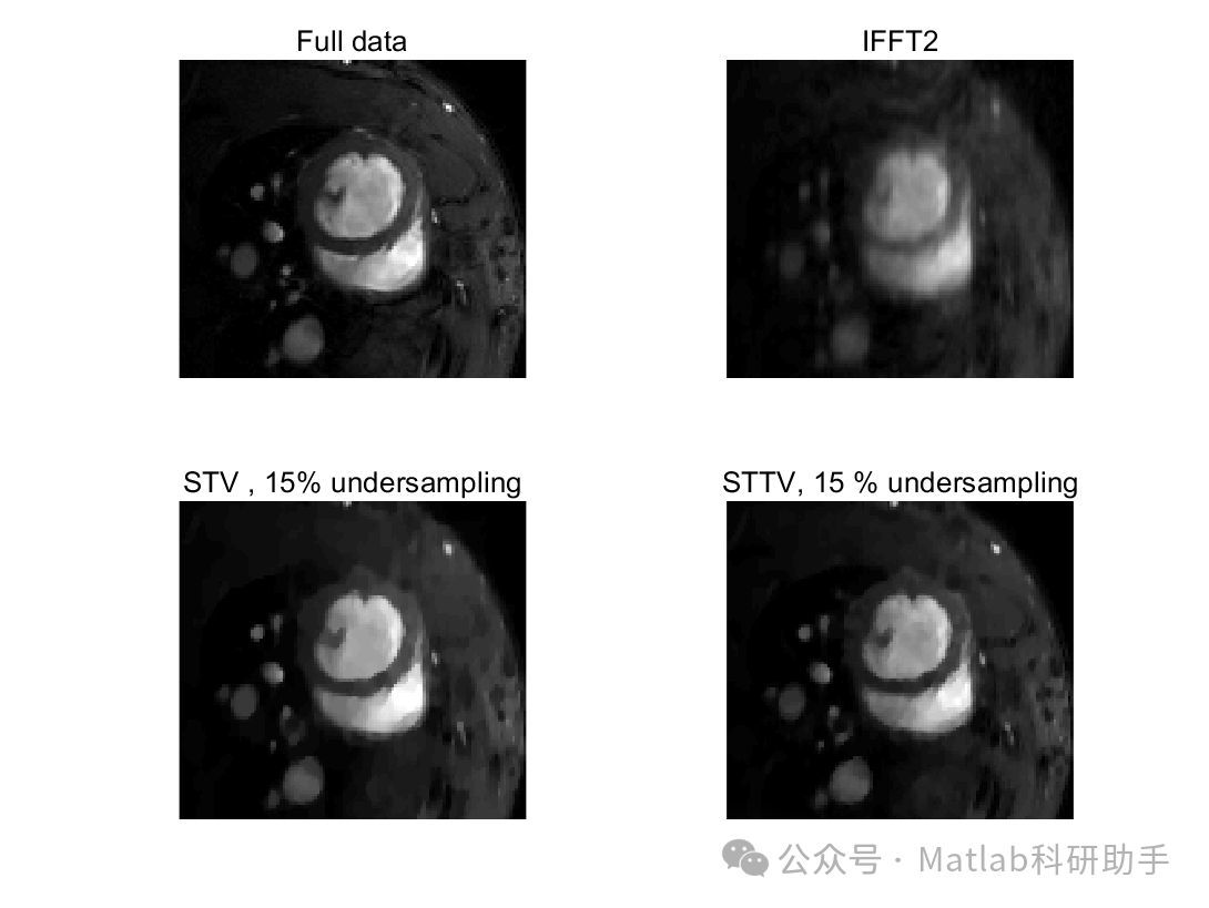 基于总变分 (Total Variation, TV) 的 CS 重建: TV 正则化是一种常用的稀疏约束方法,它假设图像的梯度是稀疏的。将 TV 正则化项引入到 CS 重建算法中,可以有效地抑制噪声,提高图像质量。TV 正则化对于心脏电影序列的重建尤其有效,因为心脏图像往往具有平滑的区域和明显的边界。