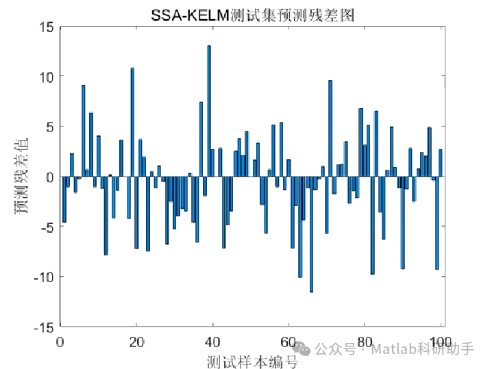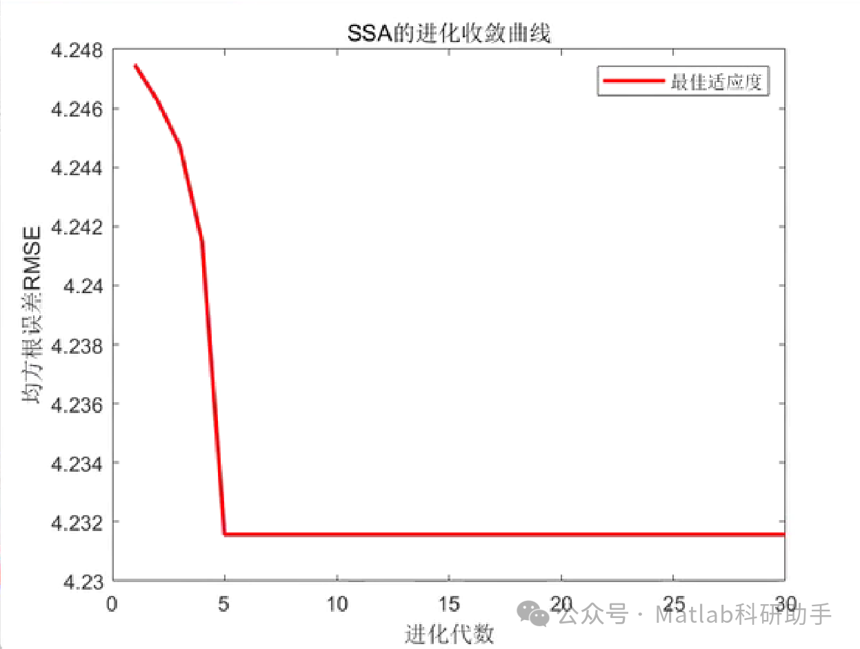 将KELM模型的预测误差作为SSA的适应度函数。常用的误差指标包括均方根误差(Root Mean Squared Error, RMSE)、平均绝对误差(Mean Absolute Error, MAE)等。