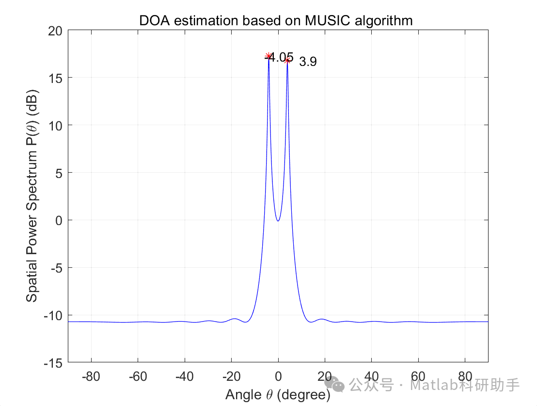 准确的DOA估计: 通过精确估计信号子空间和噪声子空间,MUSIC算法能够提供更为准确的DOA估计。其估计精度优于传统的波束形成等方法,尤其是在高信噪比的情况下。