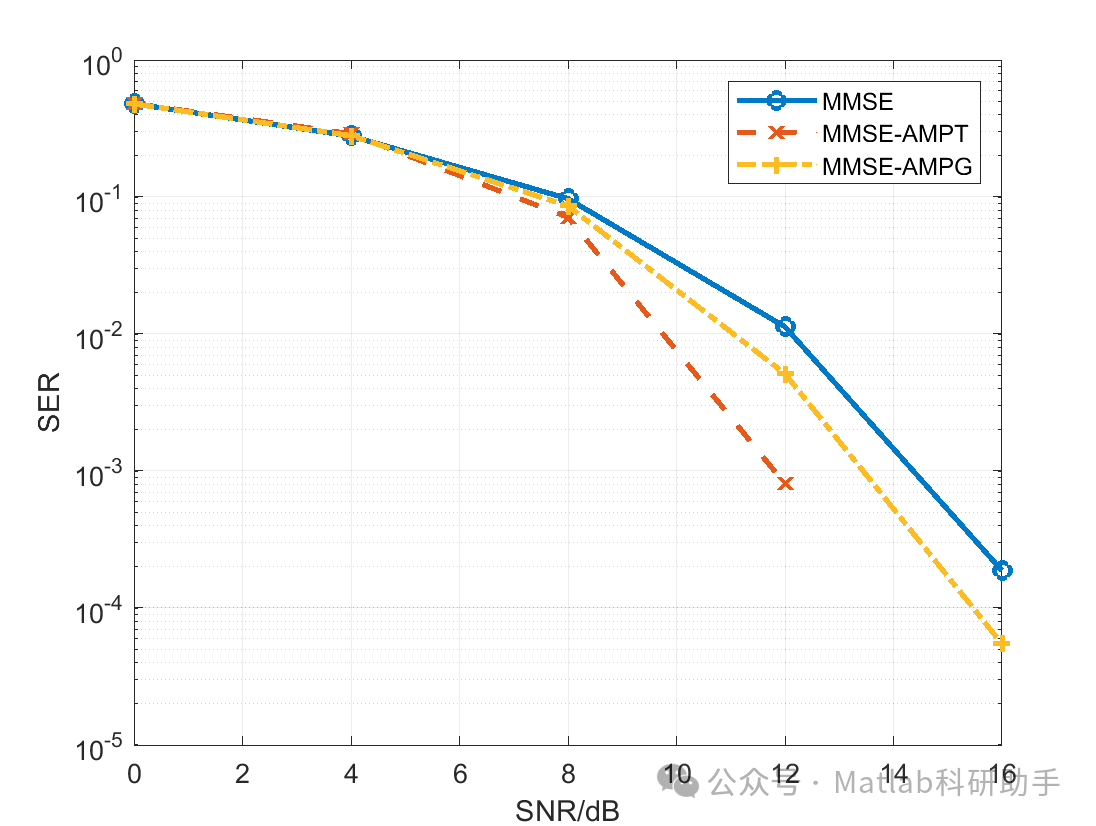 AMP 算法的计算复杂度与天线数量和用户数量呈线性关系,这使得其非常适合处理大规模 MIMO 系统中的大规模数据。随着系统规模的增加,AMP 算法的计算负担增长相对缓慢。
