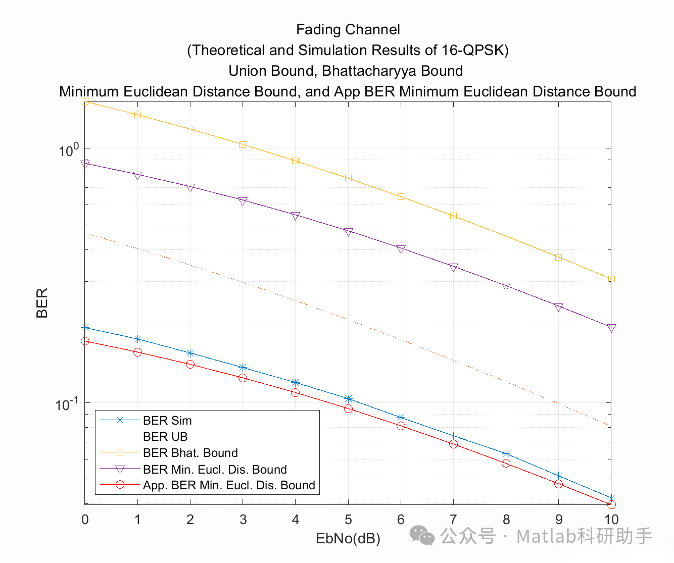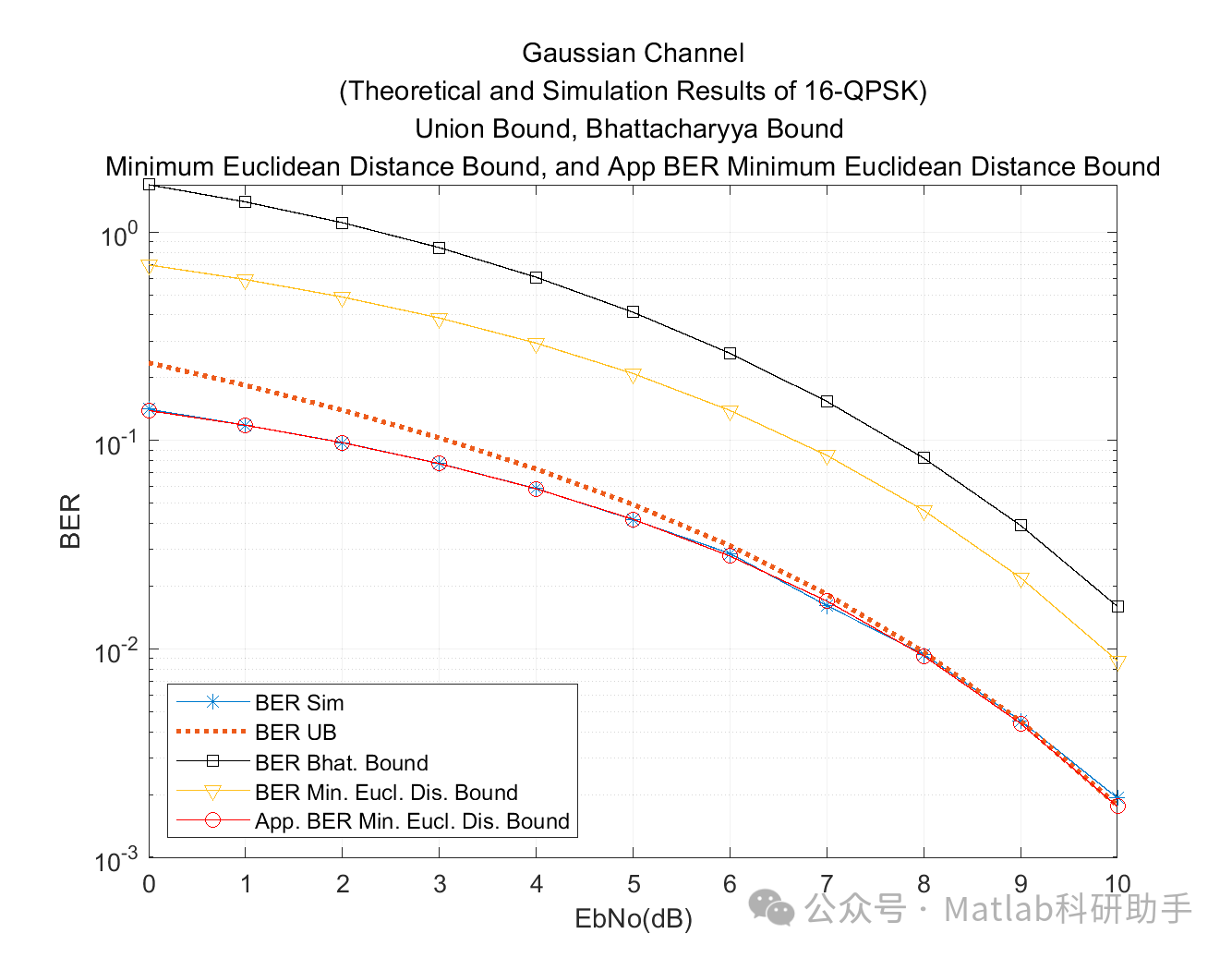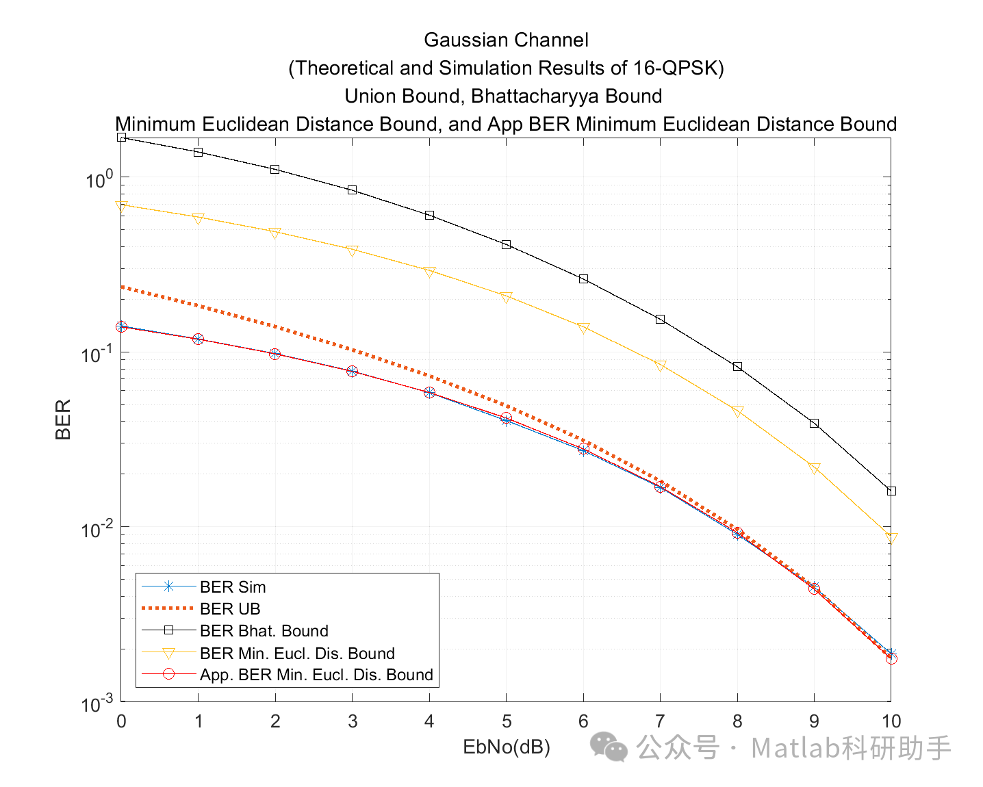 最小欧几里得距离绑定是一种更宽松但计算最简单的上界,特别是在高 SNR 条件下非常有用。在高 SNR 下,主要的错误概率贡献来自于与发送符号距离最近的那些符号。因此,误符号率可以粗略地由与每个符号距离最小的那些符号的成对错误概率来估计。