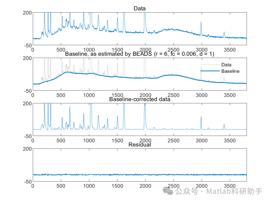 通过求解上述优化问题,可以得到稀疏系数向量 ww,进而通过 Dw 重构出基线信号。这种方法能够有效地将尖锐的色谱峰从缓慢变化的基线中分离出来,因为微球基元更适合描述基线的形状而非尖锐的峰。