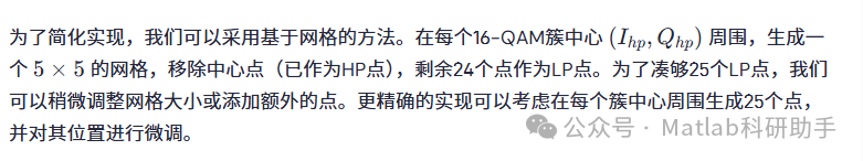 在本文的MATLAB实现中,我们将采用一种基于16-QAM核心的设计思路,并进一步细化每个簇内LP点的分布。具体的星座点坐标将根据优化准则(例如,最小化平均发送功率或最大化最小欧氏距离)来确定。