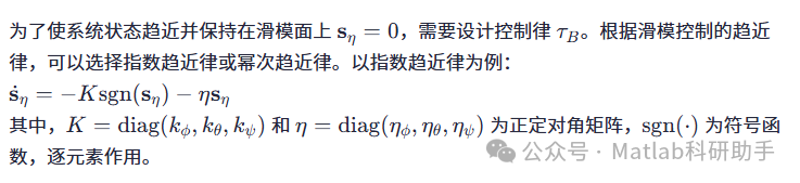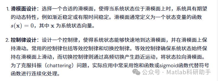 滑模控制是一种基于变结构控制理论的非线性控制方法。其基本思想是将系统状态轨迹引导至预先定义的滑模面上,并通过高频切换的控制律使系统状态在滑模面上滑动,从而达到控制目标。滑模控制的优点在于对系统参数变化和外部扰动不敏感,具有很强的鲁棒性。