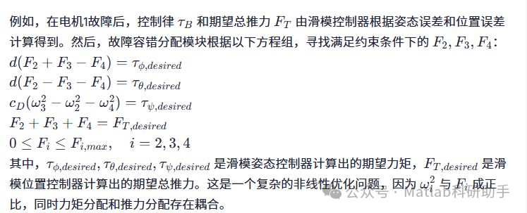 例如,可以优先满足姿态力矩的控制,然后再根据剩余的控制能力调整总推力。或者,可以将期望的姿态力矩和总推力作为目标,构建一个优化问题,寻找满足电机推力约束的最优解。