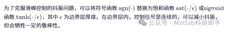 :高频切换可能导致电机磨损和系统不稳定。虽然边界层方法可以缓解抖振,但会牺牲一定的鲁棒性。如何在鲁棒性和抖振之间进行权衡是重要的研究方向。