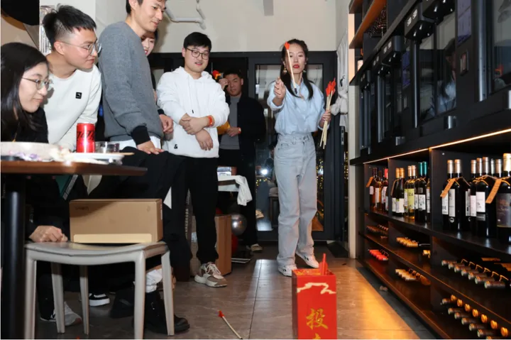 除了美食,年会的游戏也是一大亮点。夹乒乓球、投壶、尖叫鸡俯卧撑,不仅考验技巧与智慧,更点燃了市场的氛围,同事们纷纷上台展示自己的才艺,捧腹大笑,掌声不断。