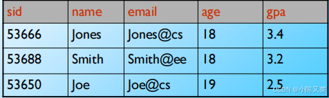 Every relation has a schema, which describes the columns, or fields(字段)