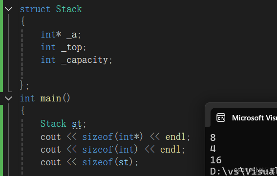 我们发现似乎不可思议的事情,因为求得这样定义的Stack类的大小居然同样也是16!!!