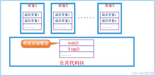 在上述中说到,类就像是一份建筑图纸,而所建造的每一个房子中的name,capacity,top应当是不一样的。但是所调用的方法Init(),Top()应当是同一个方法。因此没有必要把函数在对象中存一份。我们也可以通过汇编看看不同的对象是否调用同一个函数。