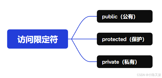 刚才有细心的小伙伴已经发现了刚才那段代码中出现了public,这个关键字是什么呢?这个就是我么要接下来要说的访问限定符,C++中除了public(公有)外,还有private(私有)和protected(保护)限定符。