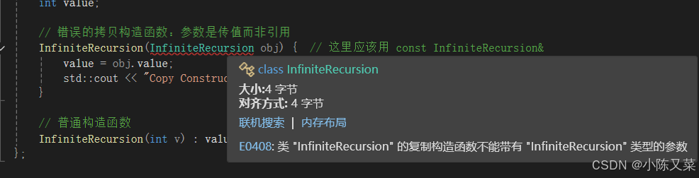 - 所以InfiniteRecursion obj2 = obj1; 这个时候会自动调用拷贝构造函数