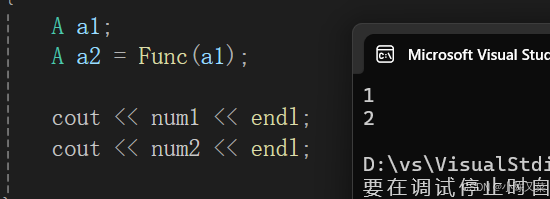 //全局变量 -- 不提倡 int num = 0; class A { }; A Func(A a) { A copy(a); return copy; } int main() { A a1; A a2 = Func(a1); cout << num << endl; }如果我们直接判断的话会比较不方便,找起来也比较麻烦。