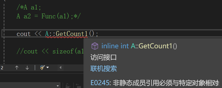 正常情况下是会报错的,但是我们可以将这个访问接口也写成静态成员函数: