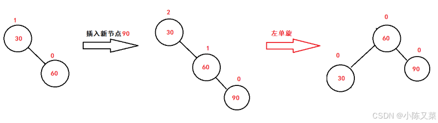 下面这种情况就是,新结点插在较高右子树的右侧,因此需要进行左单旋。