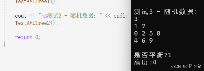 cout << "是否平衡?" << t.IsBalanceTree() << endl;