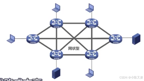 这里用示意图介绍一下按照拓扑结构分类的计算机网络: