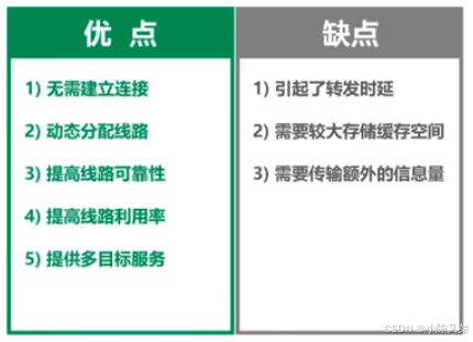 - 分组交换:在报文交换的基础上进行了数据分组,能够降低结点转发的时延,并且因为分组的步骤,有利于进行差错控制。