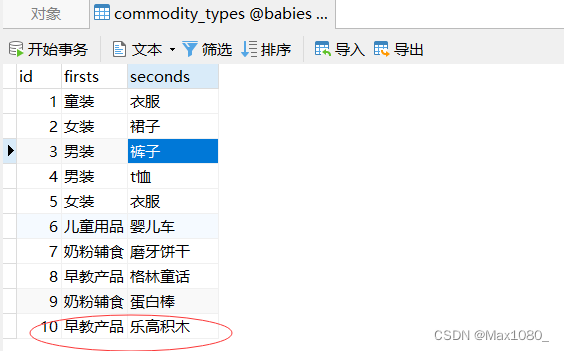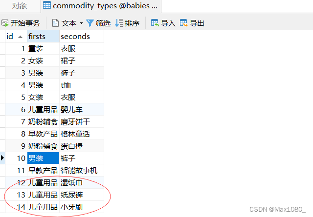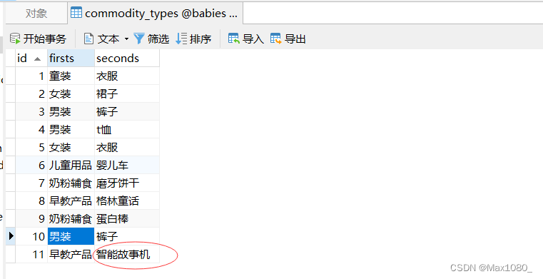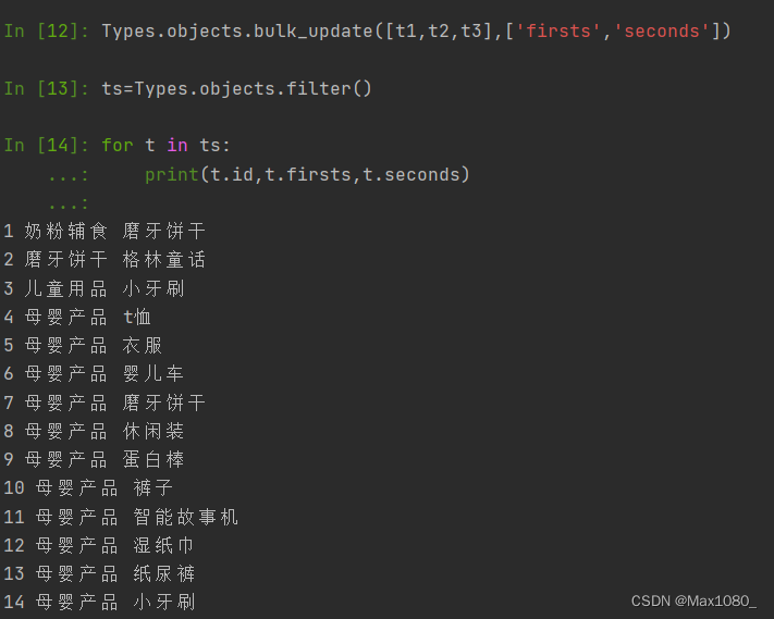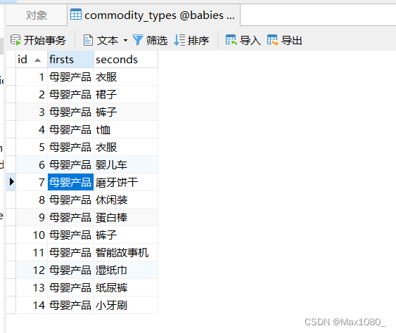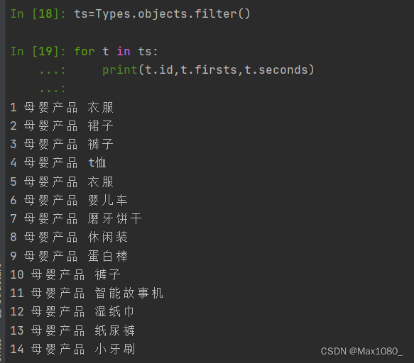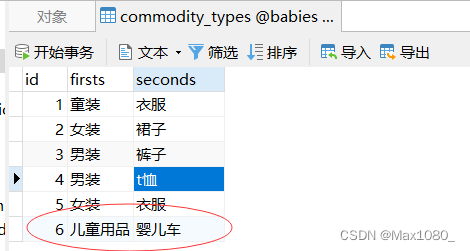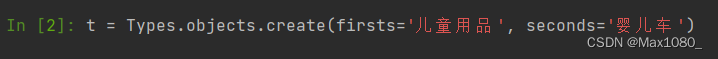 - 执行命令:t=Types.objects.create(firsts='儿童用品',seconds='婴儿车')