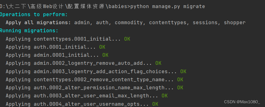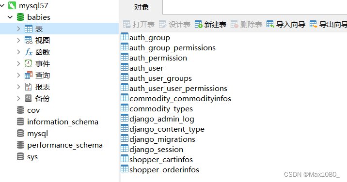 - 刷新之后babies数据库中出现一些新的表,表示迁移成功