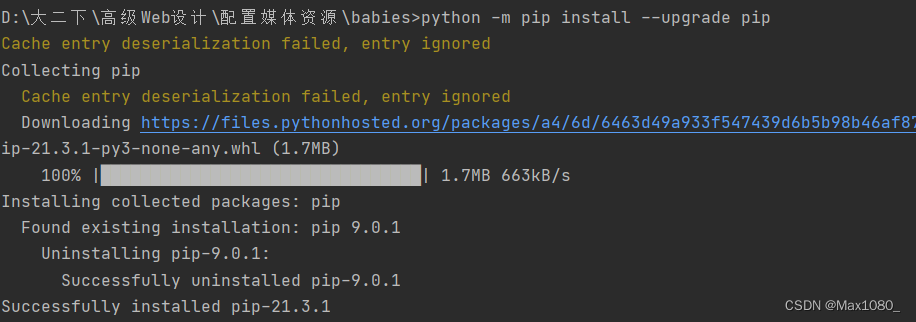 出现这种代码表示pip版本过低,使用命令升级python -m pip --upgrade pip