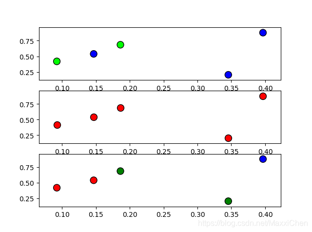 - A sequence of color specifications of length n.(比如['blue','yellow','green','red']),sequence中的元素与散点一一对应