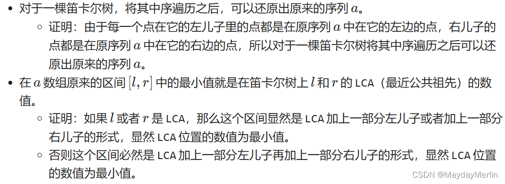 对于根节点,假设它在原数组中左边不存在任何的一个元素,那么根节点就是没有左儿子的,否则,根节点的左儿子就是它在原数组中左边的所有元素中数值最小的那一个节点;右儿子同理,如果根节点在原数组中左边不存在任何的一个元素,那么根节点就是没有右儿子的,否则,根节点的右儿子就是它在原数组中右边所有的元素中数值最小的那一个点。对于一个非根节点,建立其左右儿子的步骤和对于根节点建立左右儿子的步骤是完全相同的。