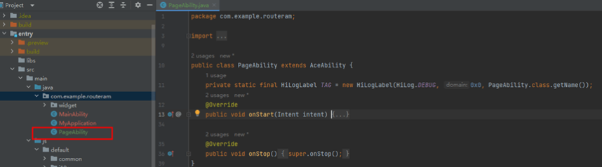 新建PageAbility继承AceAbility,在java目录下新建类型为Page的Ability如下: