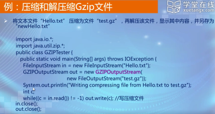 压缩:GZIPOutputStream 和 ZipOutStream: 可分别把数据压缩成GZIP格式和Zip格式