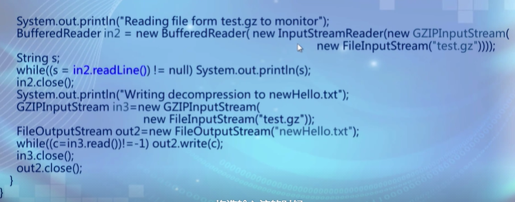 解压:GZIPInputStream 和 ZipInputStream: 可分别把压缩成GZIP格式或Zip的数据解压缩恢复原状