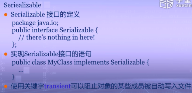 Serializable接口其实是一个空接口,只是一个标记,但若想对象序列化则必须声明