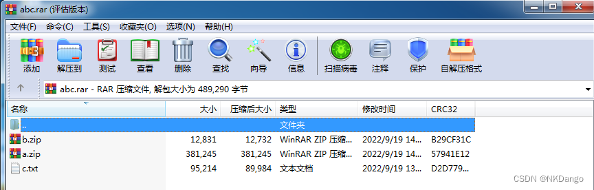 - 改完后,正常打开发现里面有三个文件(分别为a\b\c)