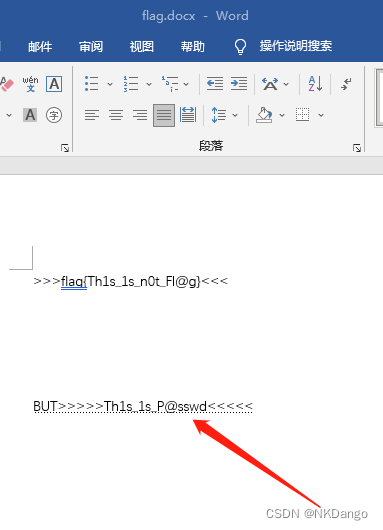 - 打开doc文档,发现假flag,打开word选项里的打印隐藏文字功能