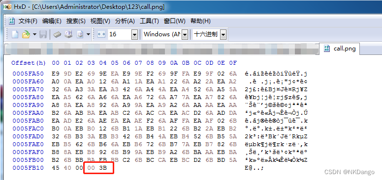 - 拖到hex里发现,文件头是png但是文件尾是00 3B也就是gif图像的结尾