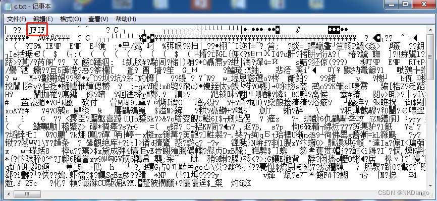 - a、b压缩包均有密码,打开c.txt发现文件头为jpg