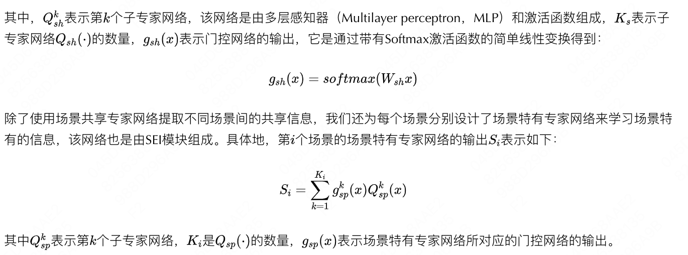 具体来说,场景共享专家网络的最终输出为GGG,其公式为: