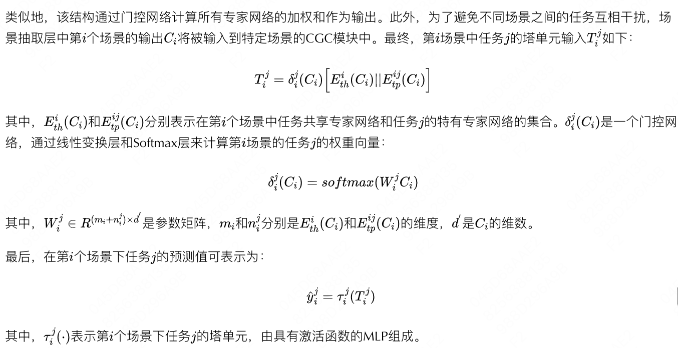 自定义门控网络主要由两部分组成:任务共享专家网络和任务特有专家网络。前者主要负责学习当前场景中所有任务中的共享信息,后者用于提取当前场景中各个任务的特有信息。