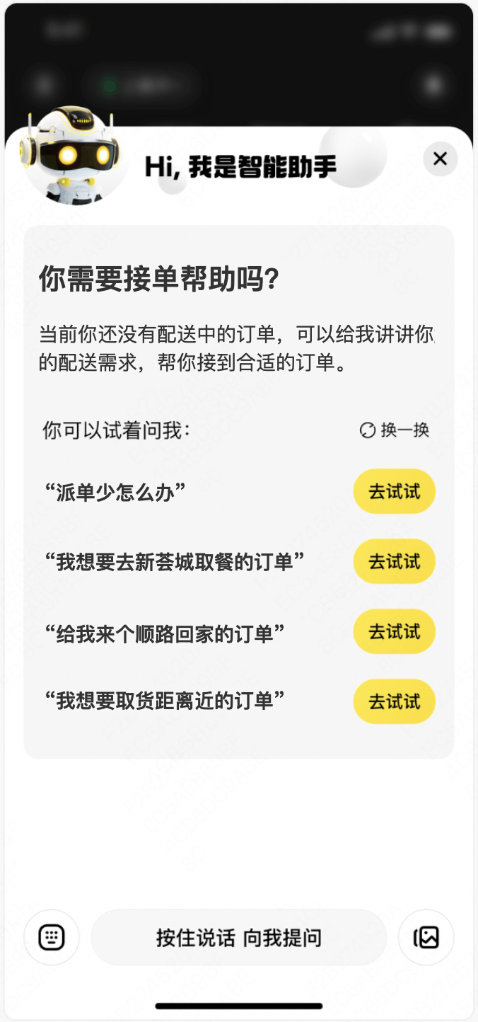 “小灵小灵,一会儿路上帮我接顺路的订单”。