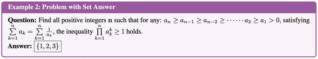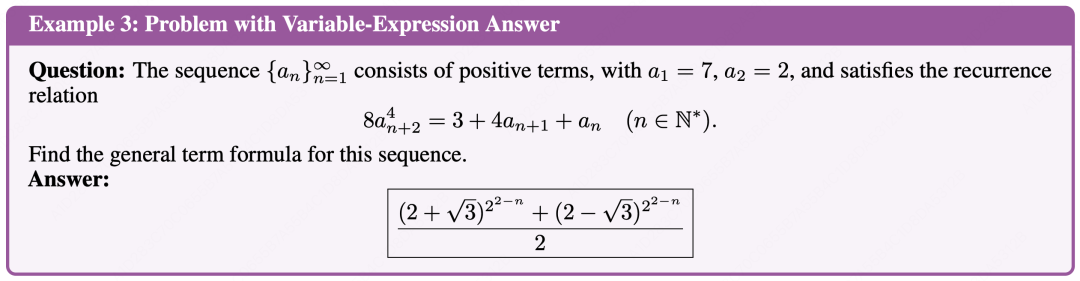数值 / 集合 / 变量表达式类(39 题):采用 “parser-based 自动评分”,要求模型将答案按指定格式(答案)输出,使用 Math-Verify 工具核验模型结果与标准答案的等价性;