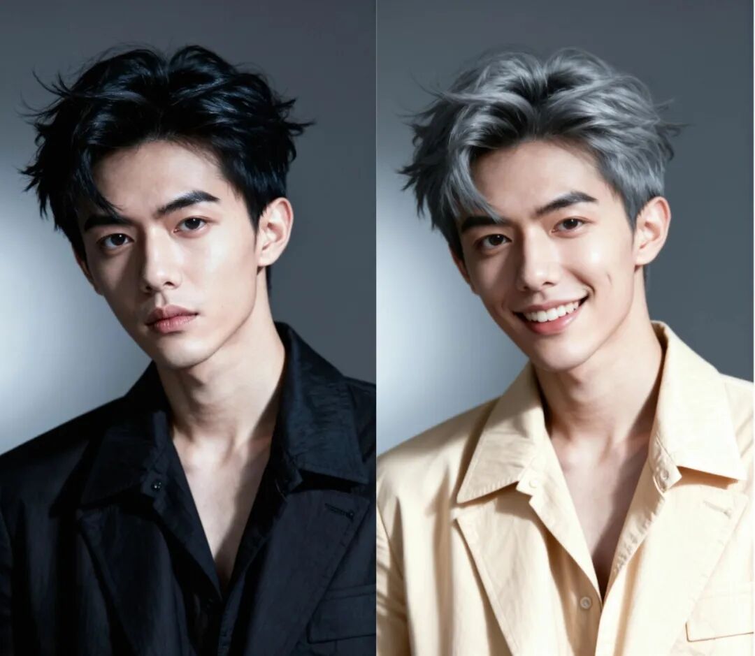 Prompt:头发颜色变成灰色,衣服颜色变成米色,面带微笑