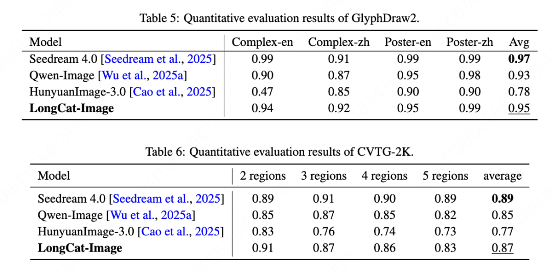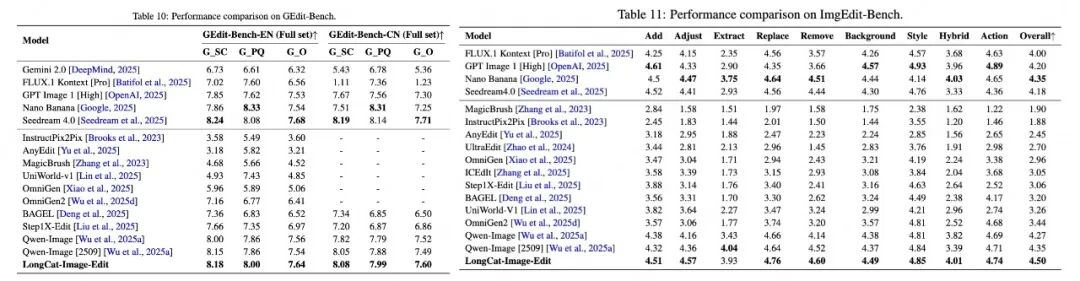 LongCat-Image具备出色的跨语言图像编辑能力,通过共享 MM-DiT+Single-DiT 混合主干架构与VLM条件编码器,文生图与编辑能力相互辅助,继承文生图的出图质量并具备出色的指令遵循、一致性保持能力,在主流公开评测基准上达到第一梯队水平。文字生成专项能力上,覆盖全量通用规范汉字并在在商业海报、自然场景文字上都展现出极强的适用性。此外,通过精细化模型设计及多阶段训练策略优化,极大提升生成真实度、合理性并可支持消费级显卡高效推理。