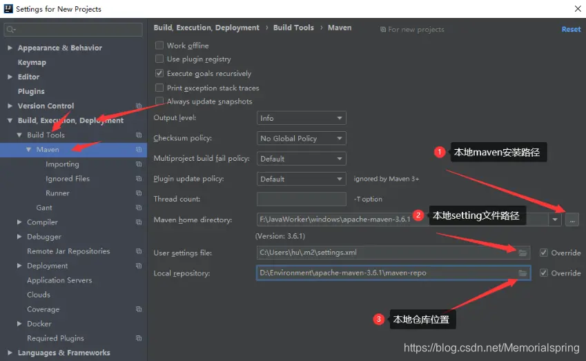 设置在:“File | Settings | Build, Execution, Deployment | Build Tools | Maven”