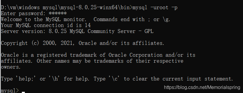 运行CMD在MySQL目录下的bin目录下执行命令: